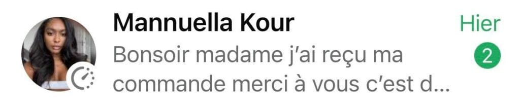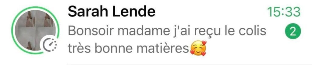 La cliente confirme la bonne réception de sa commande et sa satisfaction.