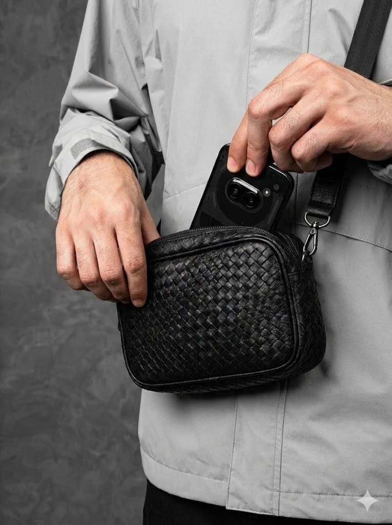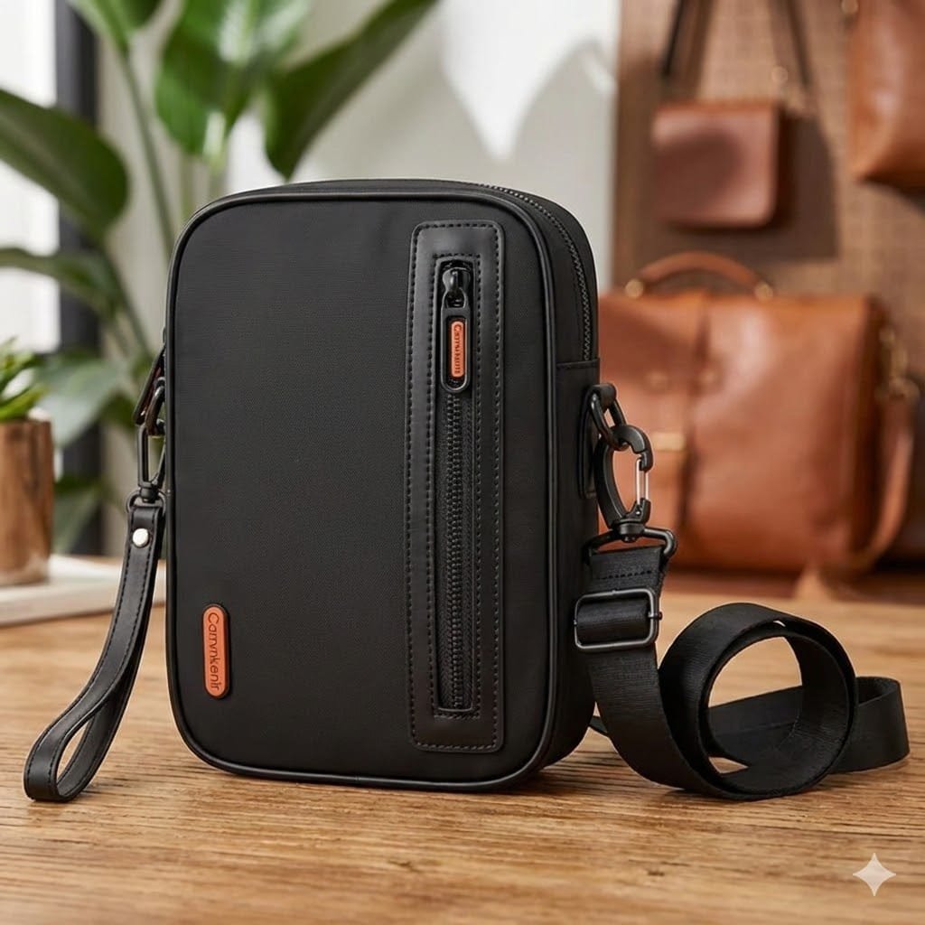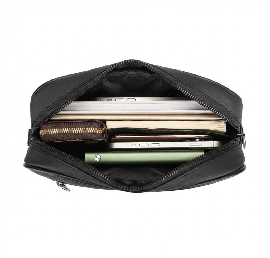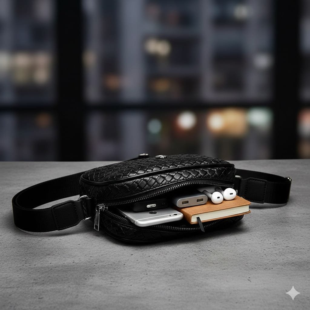 La Sacoche Minimaliste incarne la simplicité sophistiquée. Son noir profond lui permet de se fondre parfaitement avec toutes vos tenues, du costume professionnel au look casual moderne.