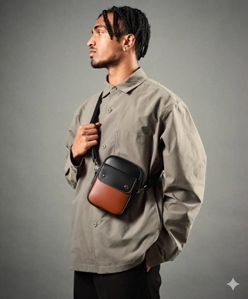 La Sacoche Urban Élégance incarne le parfait équilibre entre style moderne et fonctionnalité. Son design bicolore noir et camel apporte une touche raffinée qui s’adapte aussi bien aux tenues professionnelles qu’aux sorties quotidiennes.
